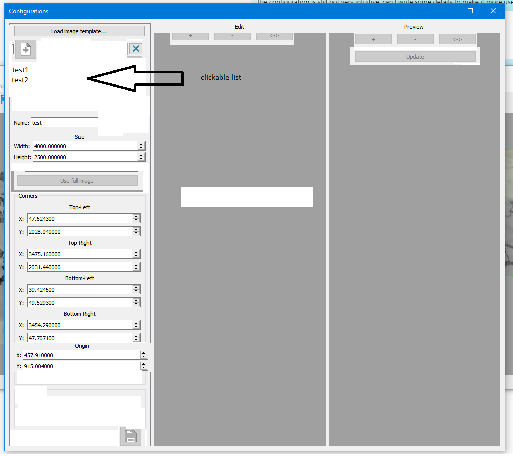 If there are no configurations, most fields to input data should be disabled (greyed out or hidden), user should be allowed to import a template picture, and to click New button which should always be enabled, and the new button should always create a new raw inside the list, and enable all data to be input in all the fields to be compiled.
