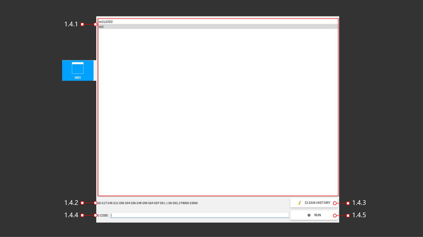 - MDI (Manual Data Input): Input and execute G-code commands manually.
